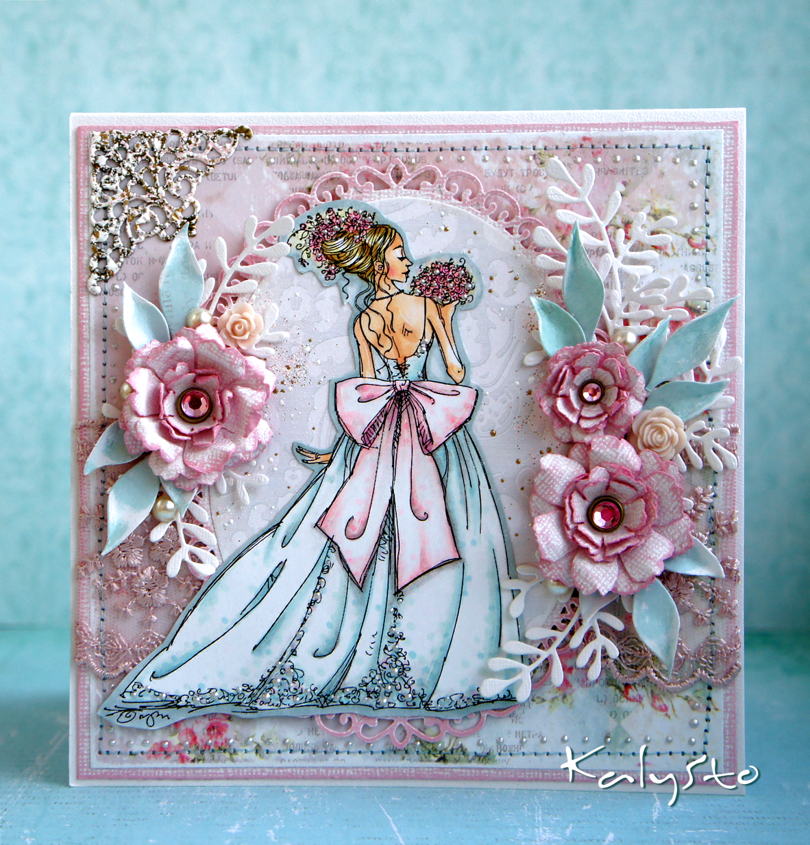 Въпреки, че е празник за двама всички знаем, коя е царицата във всяка сватба - булката!Tази картичка с направих за една фина красавица, която познавам от бебе с пожелание живота и да е изпълнен с красота и щастие.